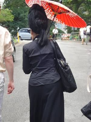 Na saída, Diane estava bem na nossa frente quando tirou da bolsa uma sombrinha chinesa para se proteger do mormaço (ela deve mesmo ser fã de uma sombra…). Não resisti e tive que tirar a foto. Isso sim é estilo!