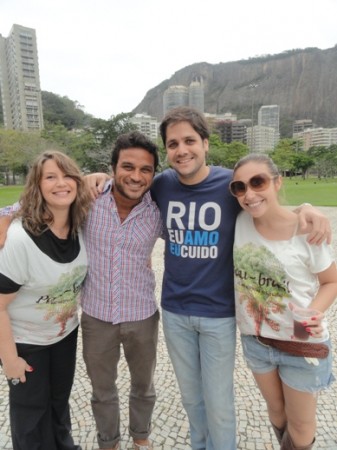 Ester e Patrícia, com Pedro Salomão, da Rádio Ibiza, e Gustavo Faria, idealizador do projeto “Rio Eu Amo, Eu Cuido”