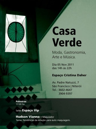 – Amanhã, entre 14h e 22h, tem Bazar Casa Verde, em Niterói, no Espaço Cristina Daher. A promessa do evento é misturar moda, estética, decoração, gastronomia, beleza e bem-estar e música. Uma das atrações será palestra do maquiador Hudson Vianna, do salão Espaço Vip, que falará sobre as tendências de beleza para a estação.