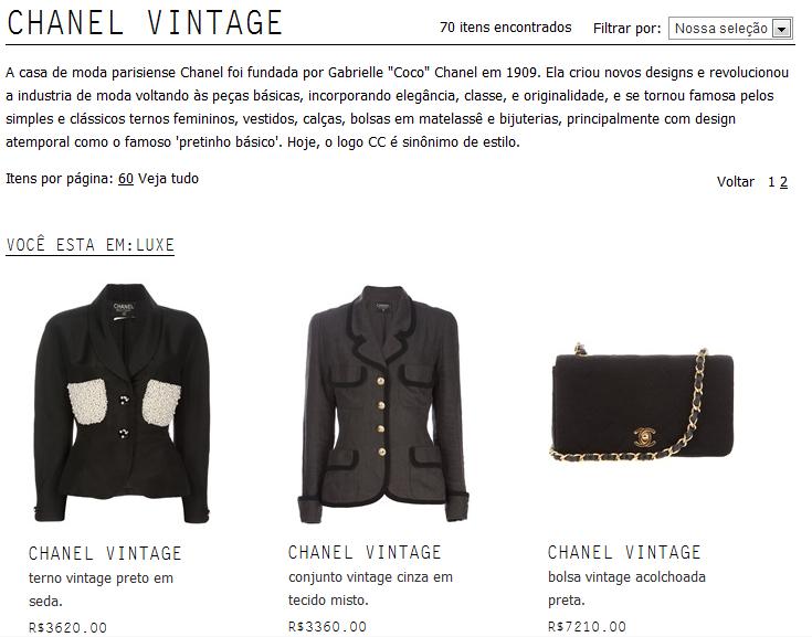 – No mundo virtual, a dica é aproveitar o especial Chanel Vintage que a fartetch.com está promovendo durante este mês. É a grande chance de conquistar uma peça vintage da grife, para guardar pra sempre! Tem bolsa matelassada, casaquetos de tweed, jóias, vestidos etc. Corram!