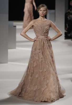 Jean Paul Gaultier: o tema da coleção era “punk can-can”. Apesar do perigo de cair no clichê, o estilista soube trabalhar com seu bom humor característico, começando pela voz de Catherine Deneuve anunciando cada look, como se fazia antigamente! Entre peças de alfaiataria e vestidos com babados, bordados e estampas, a coleção privilegiou o preto e o bege e ainda teve o modelo andrógino André Pejic como noiva! Mais Gaultier, impossível!