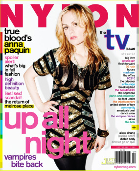 Anna Paquin é capa da nova edição da revista Nylon. Conhecida por ter sido a segunda atriz mais nova a receber um Oscar de melhor atriz, com apenas 11 anos, pelo seu papel no filme “O Piano”. Atualmente está trabalhando no seriado “True Blood”, no canal HBO. Na entrevista, atriz fala sobre seu personagem na trama sobre vampiros, sobre amor e o noivo, o ator Stephen Moyer, seu par romântico na série.