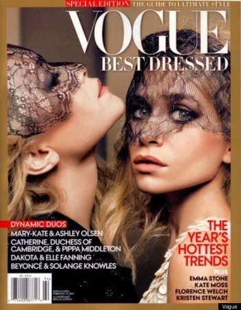 Já na edição especial das mais bem-vestidas do ano, a capa ficou com as irmãs Olsen, muito provavelmente pelo sucesso da grife The Row. E como irmãs também são tendência forte, as Fanning, Elle e Dakota, estão na capa da W, usando Valentino, quase como seres diáfanos nas fotos de Mario Sorrenti. Como elas adoram alta-costura, no editorial vestem looks de Giambattista Valli, Givenchy Couture e Chanel.