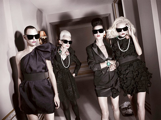 Na foto acima, as modelos Hannelore Knuts, Jane Schmitt, Tati Collitar e Natasha Poly usam looks pretos, que lembram bastante coleções recentes da grife e que ironicamente foram largamente copiadas (quem não fez um vestido coquetel de um ombro só?). Bem…mas esses são Lanvin e com preços camaradas! Porém, o que mais chama atenção na foto é a segunda modelo à esquerda, que poderia muito bem ser avó das outras, o que nos leva a pensar: será que Alber Elbaz quer passar uma mensagem “ageless” com a campanha ou a H&M quer ser realmente democrática e provar que veste todas as idades? Será que no dia do lançamento senhoras distintas vão se juntar às netas na fila, esperando a loja abrir? Só sei que vale muito a pena esperar…