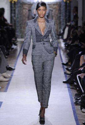 Androginia: blazers e jaquetas apareceram oversize, com ombros exagerados. As padronagens masculinas (príncipe-de-gales, pied-de-poule…) invadiram várias passarelas mas o foco também esteve na indumentária militar e nos guerreiros medievais, mostrando uma atitude mais agressiva.