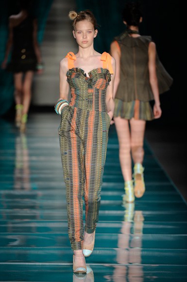 Peças-chave: blusas com volumes nas costas, micro vestidos, shorts (de alfaiataria e de maratona), calças de cintura alta, macacões, peças com decote 1 ombro, babados, laços, amarrações, transparências, renda e lingeries expostas.