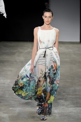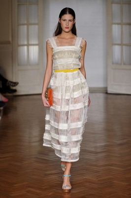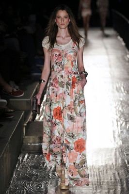 Depois de assistirmos a vários desfiles e circular por vários stands, dá para ter a dimensão do que deve estar nas lojas daqui a dois meses, quando a primavera/verão invadir as vitrines brasileiras. O sucesso comercial de temas que giram em torno da releitura dos anos 70 é infalível e os desdobramentos desta estação vão para os vestidos longos e fluidos, as muitas estampas florais, o uso de tecidos naturais, as referências étnicas e os tecidos naturais (pelo menos na aparência). O comprimento das saias desce bastante, ficando entre o midi e o longo, as pantalonas e flares (as novas boca-de-sino) desafiam a hegemonia da skinny, enquanto a cartela de cores continua privilegiando os contrastes dos tons vivos (turquesa, laranja e amarelo limão, principalmente) com os neutros (o nude abre espaço para o cru e o areia).