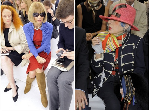 A equipe de peso da Vogue americana, Grace Coddington e Anna Wintour, a excêntrica jornalista de moda Anna Piaggi, da Vogue italiana, o ícone de estilo James Goldstein e a jornalista Ingrid Sischy marcaram presença na primeira fila do desfile de Roberto Cavalli.