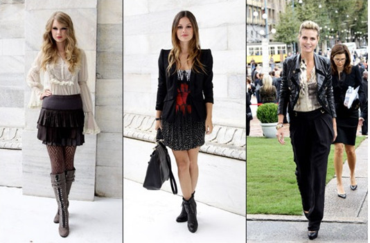 Do lado de fora do desfile, três celebridades em especial chamaram atenção de curiosos e fashionistas: Taylor Swift, Rachel Bilson e a top Heidi Klum.