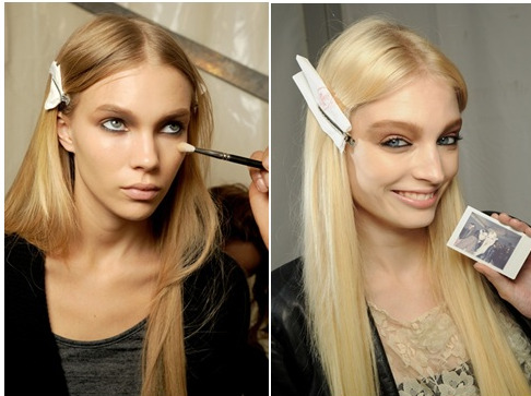 A beleza foi natural, com olhos delineados, batons tons de boca, sem blush e sobrancelhas claras. Os cabelos eram lisos e repartidos no meio.