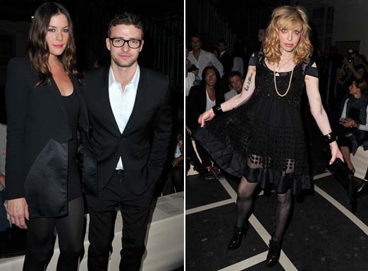 A Givenchy recebeu celebridades de peso como Liv Tyler, Justin Timberlake, a roqueira Courtney Love, que para surpresa de todos estava bem vestida, além da DJ Leigh Lezark e Julia Restoin-Roitfeld. Podemos ver como rendas e transparências estão em alta.