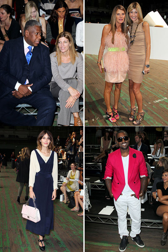 André Leon Talley acompanhado de Virginia Smith, Anna Dello Russo, diretora da Vogue japonesa acampanhada de Sarah Rutson, Alexa Chung e o polêmico cantor de hip-hop Kanye West estiveram na primeira fila para conferir a coleção de Phillip Lim, esbanjando estilo e atitude.