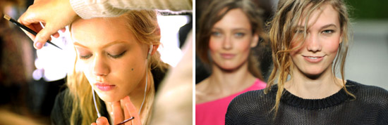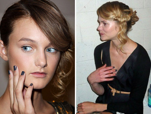 Com maquiagem minimalista e neutra, e unhas cinza, as modelos desfilaram com um lindo penteado repartido de lado, com uma lateral solta, fortalecendo uma forte tendência para o verão 2011.