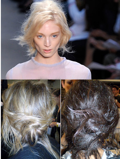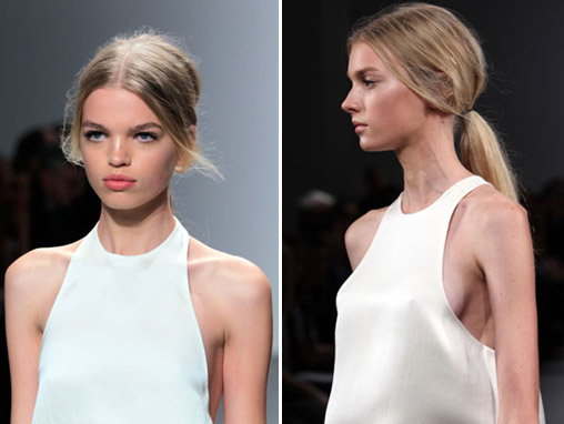 Diversas grifes optaram por cabelos presos e repartidos para o lado, e a Proenza Schouler não foi exceção! Com rostos bem pálidos, sem blush e batom, com sobrancelhas levemente alaranjadas, as modelos arrancaram suspiros dos expectadores.