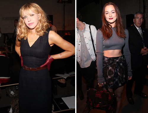 A roqueira Coutney Love, a atriz de “Gossip Girl” Leighton Meester (que chamou atenção pela barriga de fora), a stylist Rachel Zoe e o controverso fotógrafo Terry Richardson foram conferir o desfile de Proenza Schouler.