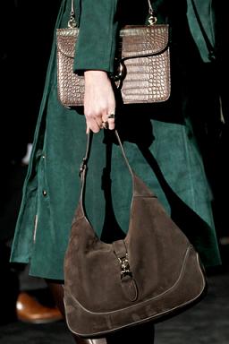 Abrindo a semana de moda italiana, a Gucci trouxe para a passarela modelos com pele de porcelana e lábios extremamente vermelhos e brilhantes. No cabelo, o rabo de cavalo com textura e frisado parecia ter saído de uma pista de dança dos anos setenta.