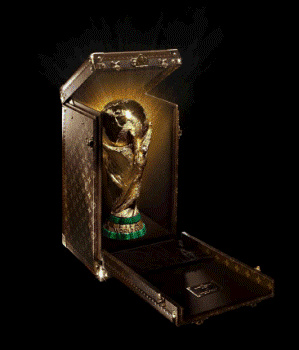 O troféu da Copa do Mundo FIFA, que tem 36,8cm de altura, pesa 6,175Kg e foi feito em ouro 18K, é o mais importante prêmio do futebol mundial e, no futuro, graças à colaboração da Louis Vuitton, viajará em um sofisticado baú exclusivo e à altura.