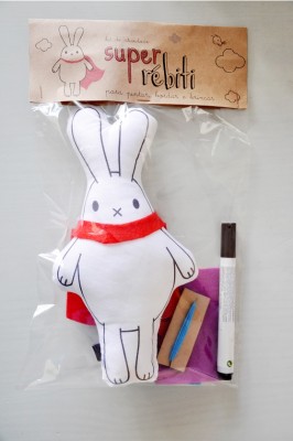 Algumas marcas apostam em alternativas diversificadas para comemorar a Páscoa. A Bébé Sucré, da designer Tatiana Ganme, aposta no kit de atividades “Super Rébiti”. Trata-se de um coelhinho impresso em tecido 100% algodão, que vem com uma canetinha atóxica própria para tecido, uma capa em feltro já recortada, retalhos sortidos de feltro e linha de bordar. Para a criança pintar, bordar e brincar!