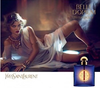 O nome une a palavra Opium (planta de onde se extrai a heroína) com “Belle de Jour”, cujo filme foi estrelado por Catherine Deneuve, amiga e musa de Yves, e o romance “Belle du Seigneur”. Ambos retravam mulheres misteriosas, que transmitiam inocência mas gostavam do perigo. A estrela da campanha é a atriz francesa Mélanie Thierry, que faz uma espécie de dança dos sete véus no vídeo para a TV, dirigido por Niton Sawnney. Já os anúncios impressos foram clicados pela dupla Mert Alas e Marcus Piggot. Stefano Pilati criou peças especialmente para a campanha e escolheu a cor do frasco: azul noite.