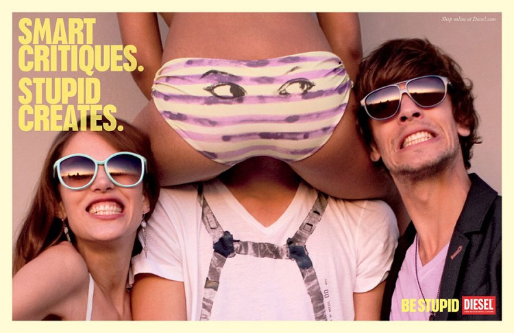 Com ensaios polêmicos, repletos de muita irreverência, a Diesel lança a sua nova campanha para a primavera-verão 2010. A grife italiana, que é pioneira no jeans premium, busca sempre chamar a atenção dos consumidores, com muita excentricidade e vem para a próxima estação com o tema Be Stupid, em que a marca coloca em prova a esperteza e a estupidez. Com 39 fotos, repletas de deboche, ilustrando o tema, a grife vem com frases como: “smart has the brains, stupid got the balls, e smart has the plans, stupid has the stories.”