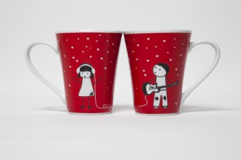 Se você não tem idéia do que dar de presente no Dia dos Namorados, a Maria Filó tem uma sugestão muito fofa! A marca recriou a antiga serenata de uma forma mais moderninha: um par de canequinhas foi estampado com um menino tocando uma balada para uma menina através de um fone. Uma graça de presente!