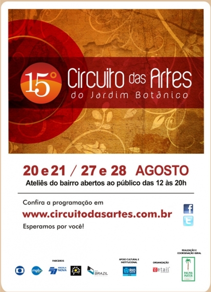 Um ótimo programa para este fim de semana é o Circuito das Artes no Jardim Botânico. Além de ateliês de moda, acessórios e decoração de portas abertas, a programação inclui oficinas, workshops, palestras (uma delas com Vik Muniz) e um circuito gastronômico nos bares e restaurantes do bairro.