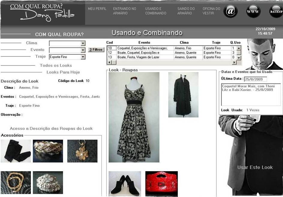 Imagine só ver o seu guarda-roupa inteirinho em apenas um click! O mais novo software “Com Qual Roupa?”, criado por Dany Padilla, disponiliza o seu closet e permite combinações de looks incríveis. O programa cataloga por fotos as peças do seu armário, desde a calça jeans, passando pelos acessórios, até as roupas íntimas. Tudo isso com informações de cores, estilos e até a última data utilizada (chique, né?).