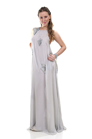 A fluidez, a leveza e as camadas de tecido caracterizam as peças que representam os encantos vividos numa história romântica, onde a dimensão da emoção é exclusiva e etérea.