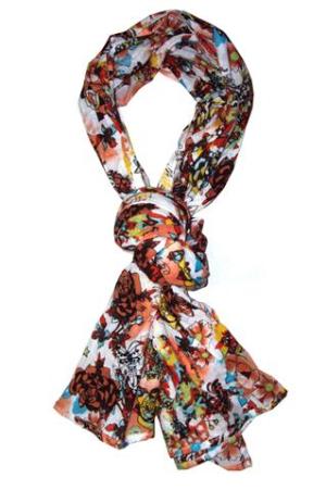 Quem disse que echarpes só podem ser usadas no inverno? Um dos acessórios mais charmosos tem lugar garantido na produção de verão. Nessa temporada, ela surge mais leve e colorida. Versátil, a versão da marca jovem Gatabakana aposta na estampa floral acompanhada de fios de lurex. Pode ser usada tanto no pescoço, como no cabelo ou mesmo amarrada na bolsa. Um charme!