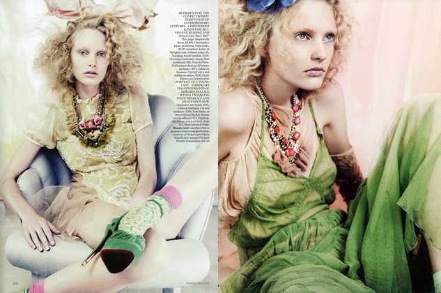 Com ensaio em estilo lolita, muito delicado e com uma vibe Alice, tendência do momento, a Vogue UK vem com o editorial Girls Allowed, para a edição deste mês da revista. Com fotos de Mario Testino, a top Patricia Van Der Vliet, aparece como uma boneca, personificando a menina que não quer crescer, usando laços, babados, tons nude, transparências de rendas e tecidos leves. O ensaio traz hypes como a febre dos laços e também das sobrancelhas “apagadas”, tendência vista em diversos desfiles, editoriais e campanhas há 2 temporadas.