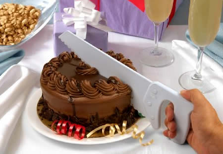 Faca-Serrote By 2010-08-042010-08-02Sem categoria Qual homem não se incomoda quando tem que cortar um bolo? E o pior, nunca sai um pedaço certo, sem despedaçar. Para isso existe uma solução, juntando a faca com o design arrojado de um serrote, para mais segurança. Na Amazon .