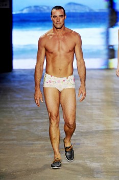 A Bumbum empolgou o público nesta tarde com Paulo Zulu na passarela da marca de moda praia carioca. O verão da grife vem recheado de estampas florais e modelagens que se alternam entre a calcinha de lacinho e a de laterais mais largas. Entre os sutiãs, muitos bustiês e cortininhas. O maiô engana mamãe ganhou novas versões com faixas transpassadas. Já as saídas de praia eram longas e diáfanas. Na cartela, vermelho, azul e verde predominaram. O cenário exibia uma foto enorme com a praia de Ipanema, berço da Bumbum.