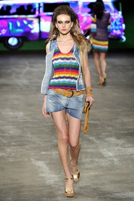 A Lix fechou o dia com mais uma viagem aos anos 70, com toda o desejo de liberdade e “flower power” que a década transmite. Ao som de “Let the sunshine in”, uma profusão de cores e estampas invadiu a passarela, num verdadeiro arco-íris. A marca introduziu jeans lavados (em shorts, coletes e calças flare) e crochês artesanais (em vestidos, caftãs e ponchos) coloridos, com bordados e franjas.