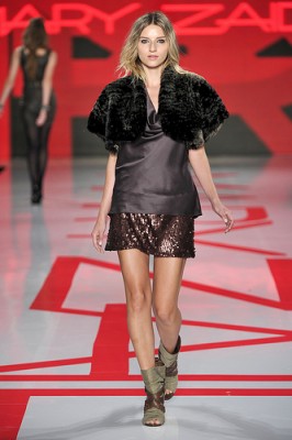 No inverno da Mary Zaide, o tema principal era o rock urbano, com looks entre o esportivo e o minimalista, toques de anos 60 nos vestidos retos e um trabalho especial nas texturas, misturando couro croco com lã e chamois com seda, por exemplo. As rendas e os brilhos dos paetês apareceram bastante também. Na cartela, predominância de tons escuros, com muitos marrons, cinza e preto quebrados por fúcsia e um pouco de vermelho.