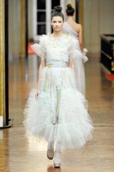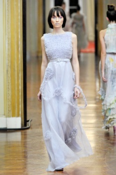 Aconteceu hoje, às 17 horas, no Palácio da Cidade em Botafogo, o desfile inaugural do evento com a marca carioca Nicole Abramoff que apresentou coleção inspirada no Impressionismo, em Renoir e pinturas renascentistas. Entre mimos da Pharmacia Granado, doses de chá de rosas e taças de champagne, os salões, da construção georgiana datada da década de 40, pareciam presenciar um reencontro de amigas. Enquanto na passarela, ao som de uma valsa de Shostakovich, o que se viu foi muita fluidez, leveza e romantismo ilustrados por cores pasteis em minis e longos plissados, cintura marcada, laços e brilhos em acessórios e maquiagem.