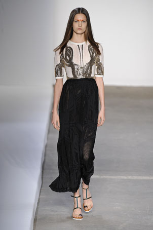 Sempre surpreendendo, a marca de Liliane Rebehy inspirou-se na Índia, mais exatamente nos desenhos das tatuagens de henna, para trabalhar seus belos tricôs nesta estação. O desfile foi bem colorido, com muito roxo, verde, laranja e turquesa, além de preto e beges, e o tricô ganhou brilhos, bordados e furinhos.
