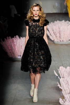 As melhores peças eram as de renda preta com brilhos e as de tecidos fluidos, mas o clima geral da coleção era “pesado” e um pouco datado demais. Difícil encontrar uma mulher contemporânea que queira se vestir de forma “vintage” tão literal.