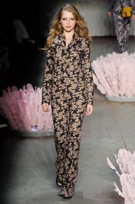 O inverno de Nica Kessler vem cheio de referências românticas baseadas em filmes como “Mary Poppins” e “Ironias do Amor”. Na prática, o que seu viu foi um mix de anos 80, 70 e 40, com volumes localizados nos quadris e ombros, babados, tecidos encorpados e calças boca de sino. A cartela tinha cores difíceis: mostarda, azul marinho e cinza, além de estampas invernais demais.