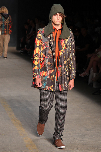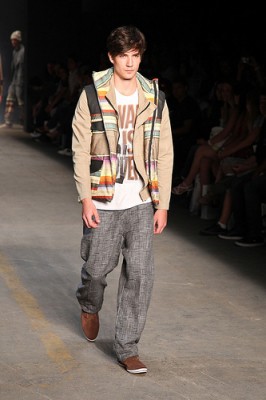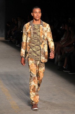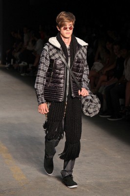 Na masculina R.Groove, o clima de refúgio nas montanhas misturou referências esportivas, com muitos tricôs e ares andinos, vistos sobretudo nas estampas. As formas eram amplas nas calças, com casacos, jaquetas e parkas mais ajustados e algumas peças de alfaiataria bem interessantes. Na cartela, muito cinza, ocre e tons alaranjados nas estampas que lembravam folhas outonais. Outro destaque foi o xadrez em preto e cinza dos primeiros looks.