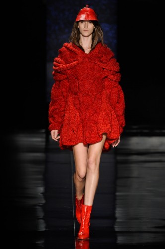 As texturas tiveram seus momentos nos looks de pelo e no couro trabalhado, um bom contraste para as modelagens soltas e desestruturadas da grife, que não abre mão das mini saias (balonês) e das calças de gancho baixo. Além dos tons sóbrios, o vermelho marcou presença em algumas boas peças e levantou o astral de um desfile sério demais para a consumidora da marca.