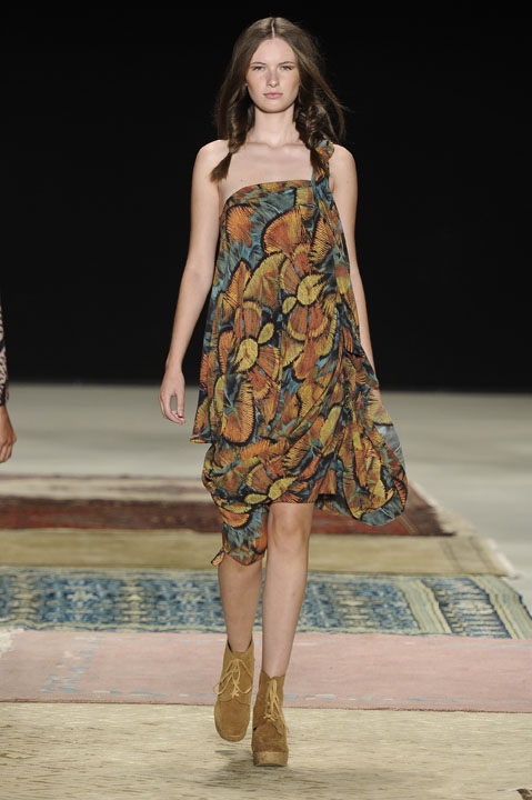 Com a predominância do mix de estampas, característico da grife, a cartela de cores passeou pelos tons terrosos, azuis e cinza. Tendência internacional, a estampa animal printing de cobra também esteve presente entre as variadas estampas gráficas. O espetáculo ficou por conta do desfile final da própria estilista, que entrou para agradecer à plateia com seu habitual alto astral.