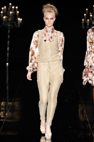 Transparências, texturas e brilhos (no próprio tecido ou aplicados) ornavam peças de modelagens fluidas com caimentos mais próximos ao corpo, porém com muito movimento. Tutus, segundas peles, fitas entrelaçadas e muito rosa, foram alguns dos elementos do ballet que apareceram interpretados livremente, numa releitura inusitada. Tricôs, rendas, veludos, cetins e tules deram vida às criações da estilista.