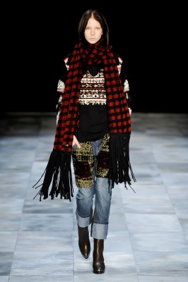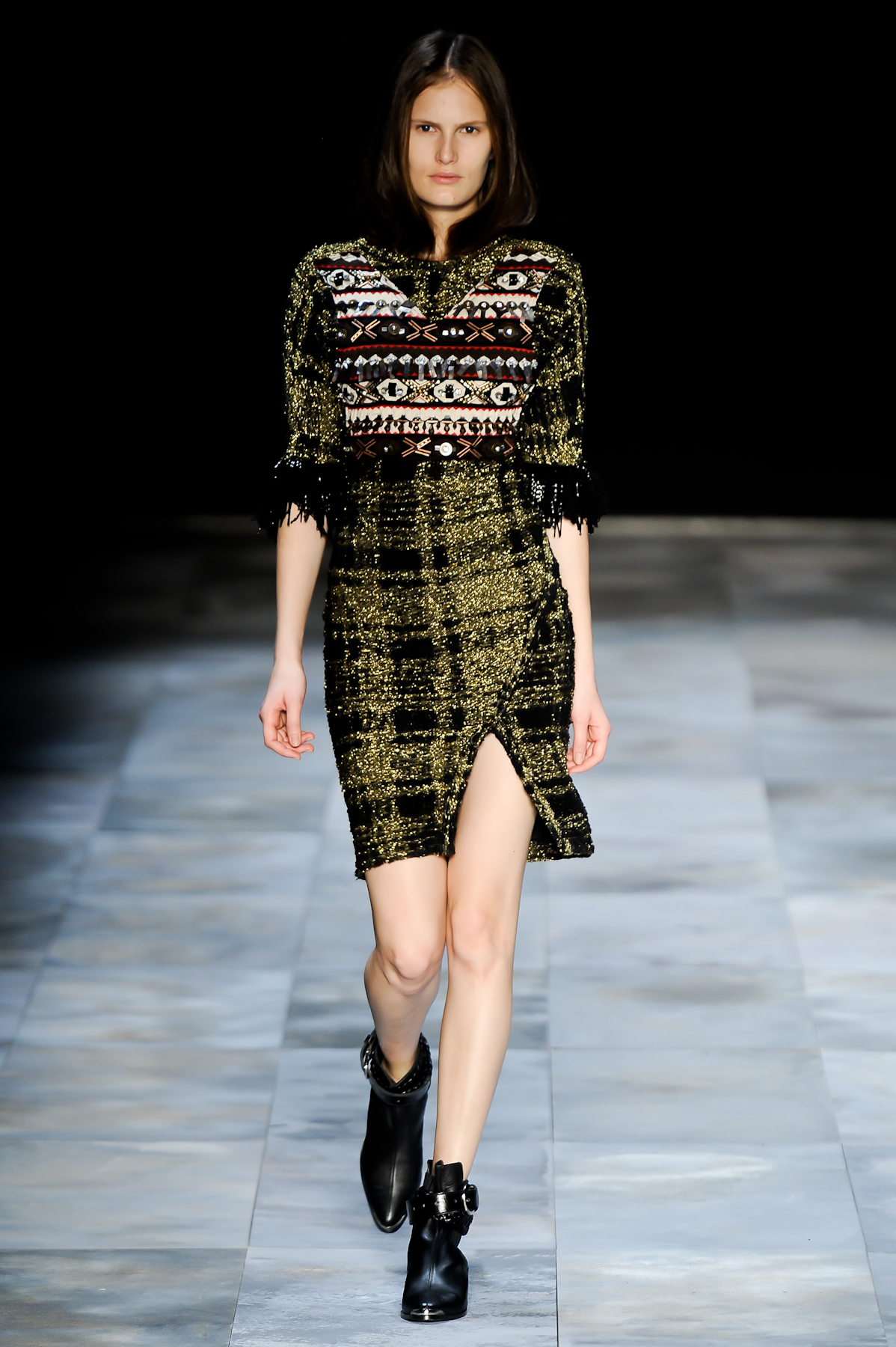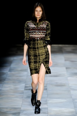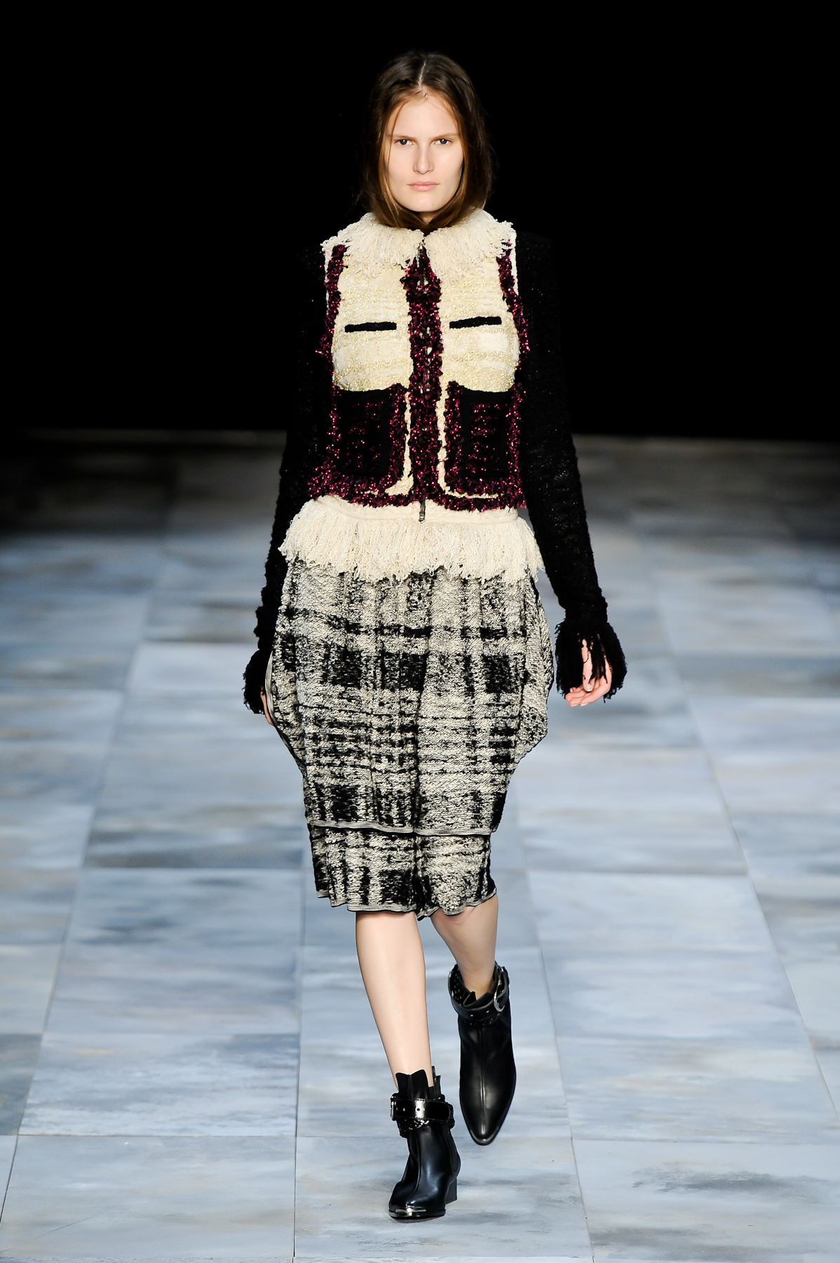 Um dos desfiles mais disputados do dia, a Coven mostrou uma coleção inspirada em tapeçaria e na estilista Coco Chanel. Conhecida por trabalhar com tramas e texturas, a grife  reinventou algumas estampas clássicas, como o tweed, mas com um ar moderno . Fios como lurex, bouclé e chenille foram escolhidos para a confecção das peças, além de bordados, pedrarias e franjas. Com modelagens simples e muito mix de tecidos, as peças foram quase que monocromáticas, se não fossem o azul, o rosa e alguns xadrezes. Destaque para os acessórios, maxicachecóis e anéis grandes, forte tendência para a próxima estação.
