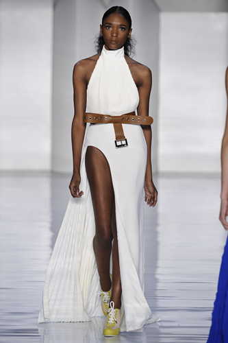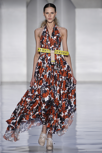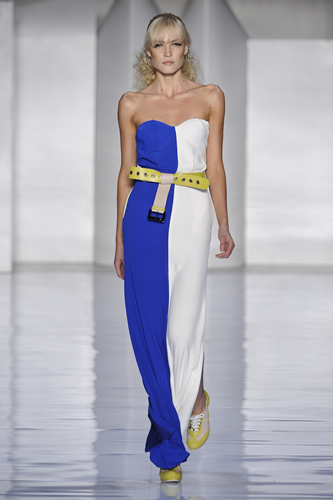 A cartela foi super vibrante: muito laranja, amarelo limão, azul royal e branco, que apareceu num belo longo com detalhes plissados para fechar o desfile.
