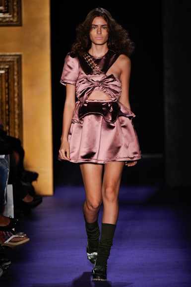 Perspontos nas roupas e botões dourados que pareciam lacinhos deram o tom “bonequinha”. Para completar, mocassins com meias curtas coloridas (numa certa alusão a algumas coleções da Prada), funcionaram muito bem.
