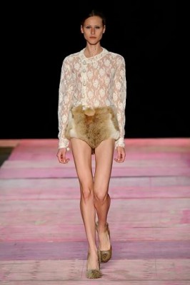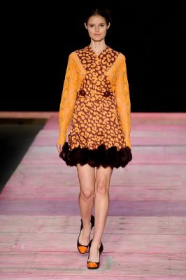 Ao som de “Madame Butterfly”, de Malcolm McLaren, os ares característicos da pop art japonesa trouxeram ainda cores fortes com ênfase no verde e no laranja, pontuados pelos tons preto, branco, bordeaux, lilás e camelo. Destaque para o toque descontraído dado pelo aparecimento de poás peludos e pied-de-coq com pinta de animal print por toda a coleção.
