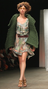 Inspirada na arte e em nomes como Klimt, Frida Kahlo, Da Vinci, Portinari, Dali e Van Gogh, entre outros, o inverno de Kylza Ribas pode ser definido, reafirmando o release, como experimental. A estilista investiu principalmente nas estampas, brincando com texturas e materiais. As formas eram amplas – a tendência da estação -, misturando tecidos levíssimos com pesados tricôs de lã. O destaque fica mesmo por conta da experimentação das estampas, digitalmente produzidas a partir da mistura de fios e tecidos queimados. Muito boa também a estampa de caveirinha, ótima no trench coat plastificado e a estampa final, com rostos e desenhos remetendo aos artistas que inspiraram a coleção. Por Mirela Lacerda