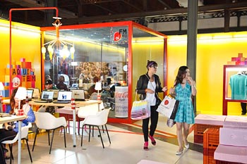 Idealizado pela Luminosidade, o lounge da Oi apresenta o conceito, tão em voga, de “Reciclagem, Reaproveitamento, Sustentabilidade e ‘Ready Made’”. O diferencial do espaço ficou por conta da tradução deste conceito pelo estúdio paulistano 20.87 Designworks, um coletivo de jovens designers capitaneados por Houssein Jarouche, da Micasa, que aproveitou/transformou carrinhos de mão em cadeiras ‘carriolas’, engradados de mercado em sofás, lanternas de oficina mecânica em lustres (da linha Great4Mechanics). Os designers não pouparam esforços na elaboração do projeto, nem estilizaram o comum e o industrial, que aparecem empregados diretamente reforçando o conceito de ready made.