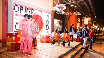 Vários atrativos são encontrados no espaço como: uma exposição de camisetas da Copa do Mundo (Oi Torcida), desenvolvidas por Vitor Santos, ex-Veron, hoje, do Estúdio Árvore; o estúdio Oi FM que faz ‘programetes’ ao vivo, recebendo personalidades que circulam pelo evento; um painel onde convidados formam palavras como num quebra-cabeça; os desfiles passam ao vivo nos telões espalhados pelo lounge (Oi Moda) e, no deck, o pessoal pode curtir uma música e usar computadores que são liberados para o público, reforçando o conceito da Oi de ‘desbloqueado’, assim como seus celulares.