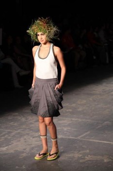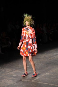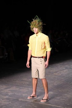Na cartela, muito branco, bege, amarelo limão, verde flúor, azul e estampas do tipo argyle, que apareceram na parte final. Nos pés, os chinelos Ipanema, patrocinadora do desfile. E como acessório memorável, “food for thought”: perucas com brotos e mudas de plantas, como árvores em crescimento. Interprete do jeito que quiser….